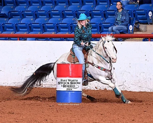 She has been riding horses for over fifteen years and regularly competes in barrel races with her horse Princess. She also enjoys training her young horse, Panther.
